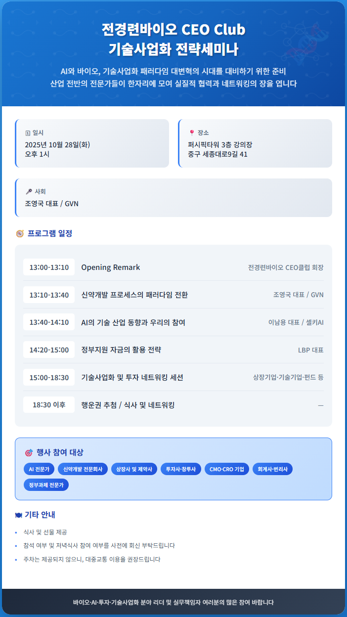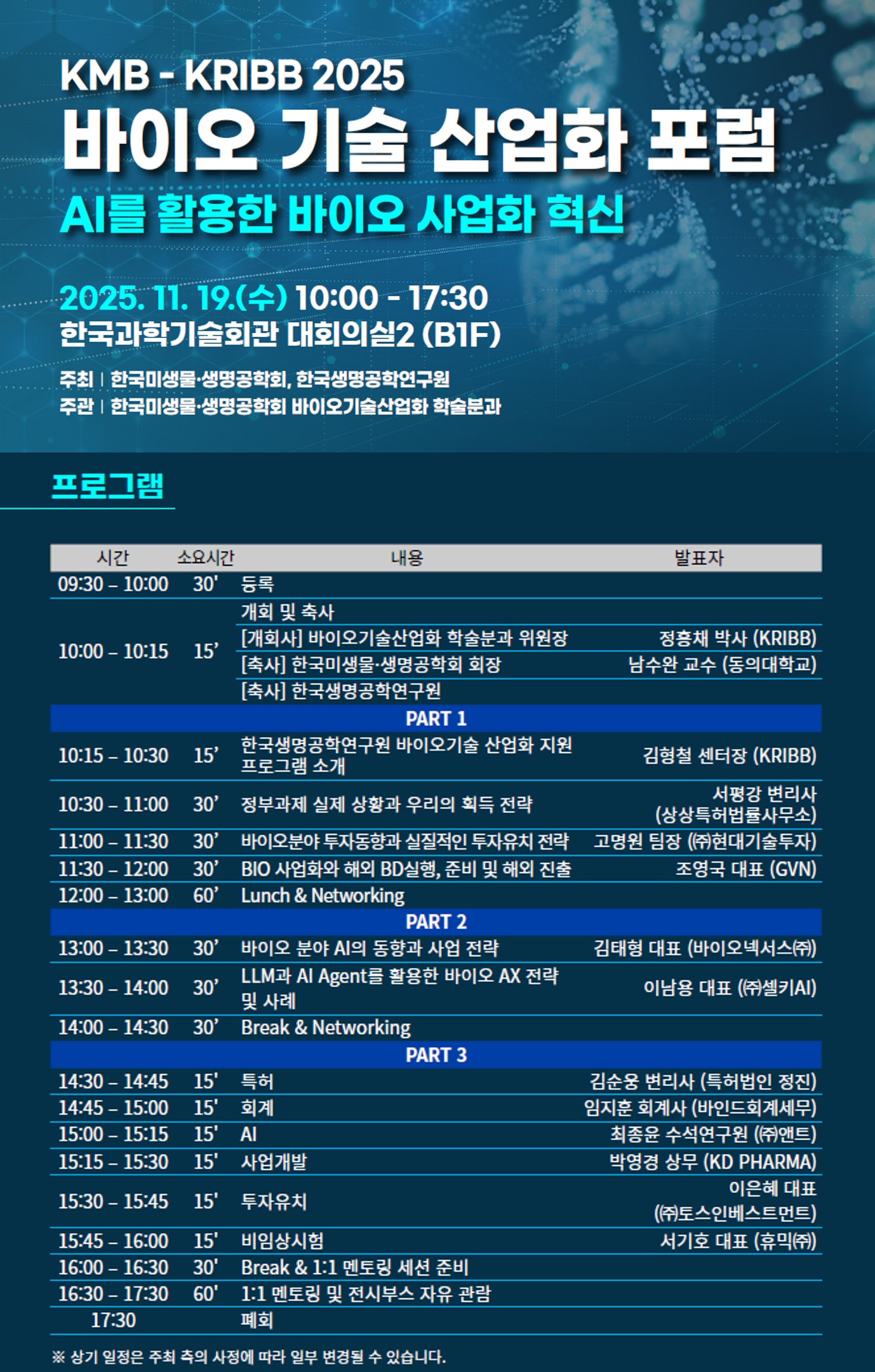 KMB–KRIBB 2025 바이오 기술 산업화 포럼: AI를 활용한 바이오 사업화 혁신